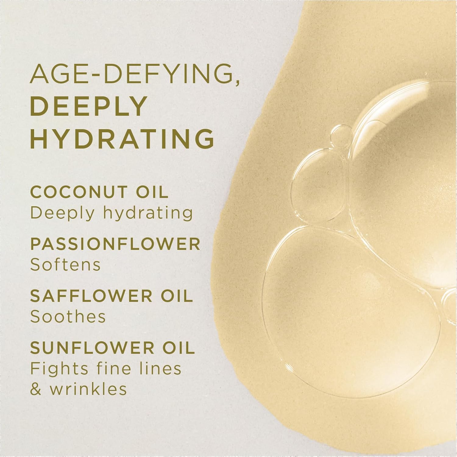 - NATURAL INGREDIENTS. Antioxidant-rich coconut oil and Vitamin E help prevent the signs of aging and promote skin-cell regeneration to minimize the appearance of wrinkles and improve the look of stretch marks. Sunflower and safflower oils offer soothing benefits that improve the texture and softness of the skin.