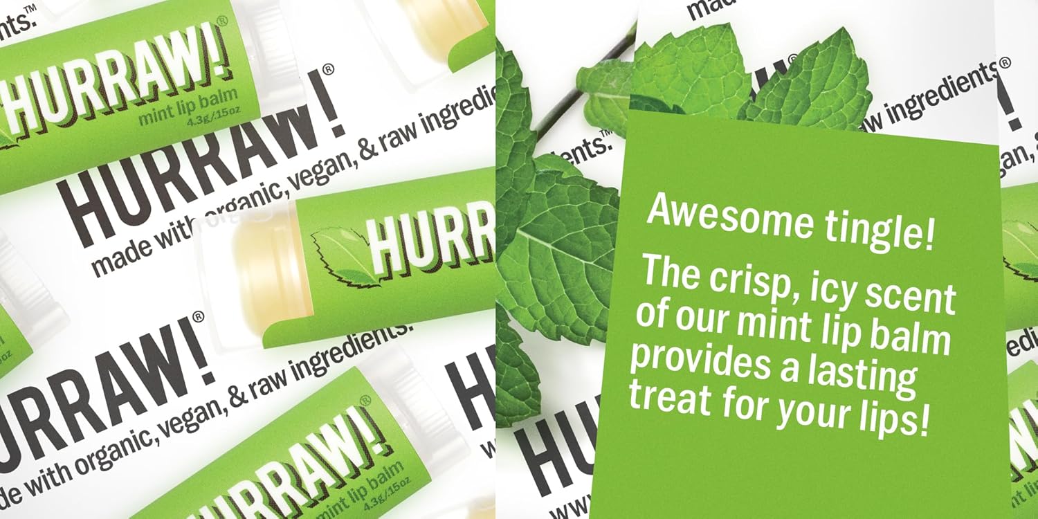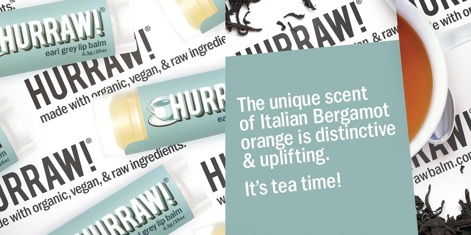 - THREE 4.8g/.17oz Oval Tubes of HURRAW! Lip Balm packaged in a white HURRAW! branded pillow box. COCONUT Balm (Raw Coconut Oil…. Not too beachy, a little toasty... coconut perfection), EARL GREY Balm (You'll be 'loving tea' all day long), MINT Balm (long lasting minty treat for your lips!). Made with certified organic, vegan, and raw ingredients. Hurraw! Lip Balms are certified 100% all natural origin, cruelty and gluten free. Non-GMO. Bee, Shea, Soy and Palm Free.