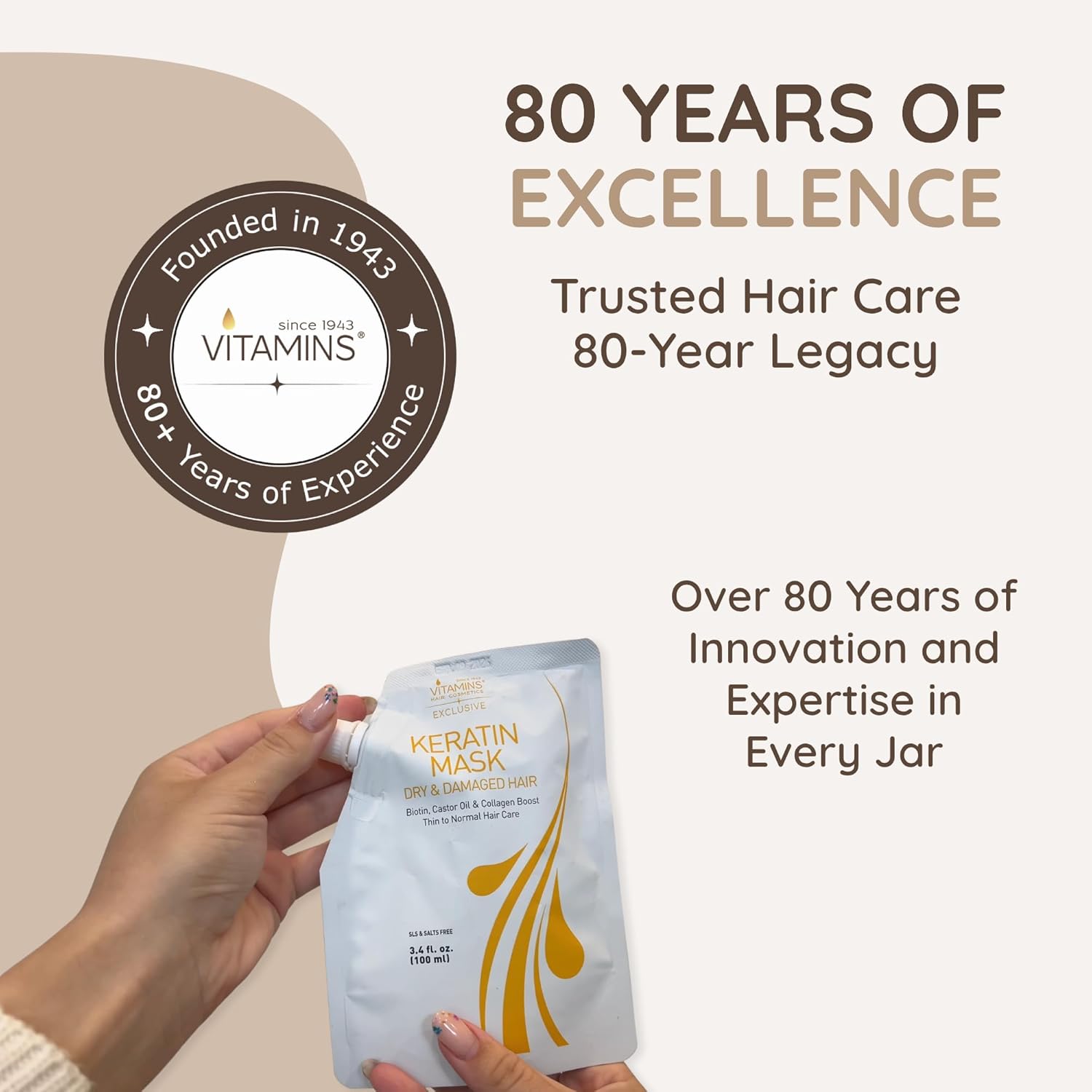 VITAMINS hair cosmetics Keratin Hair Mask - Protein Repair Keratin Treatment - Deep Conditioner for Dry, Damaged, Curly, Straight & Frizzy Hair with Biotin, Collagen & Castor Oil - 3.4 Fl Oz