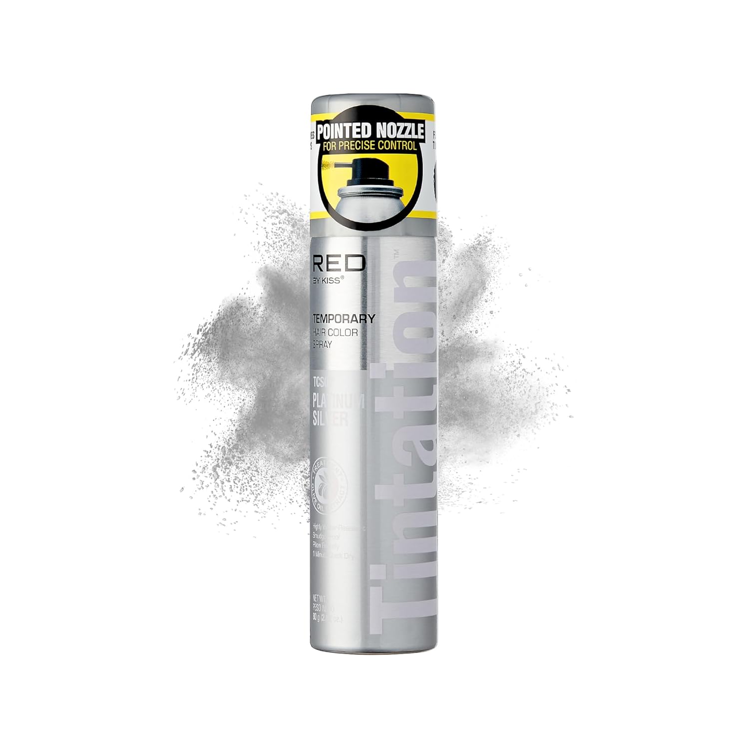 Red by Kiss Tintation Temporary Hair Color Spray 2.82oz, Quick-Dry & Smudge-Proof, Vivid Color Washable Hair Dye, Styling Spray Cosplay Halloween Birthday Party Festival (Platinum Silver)