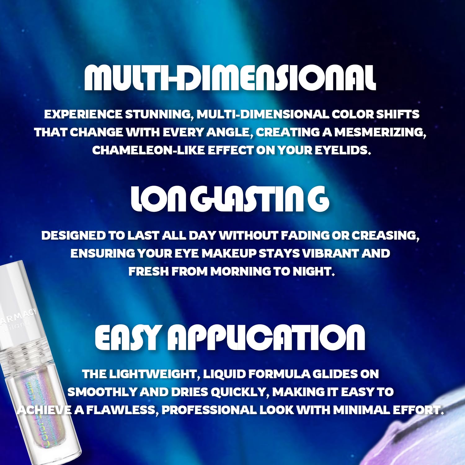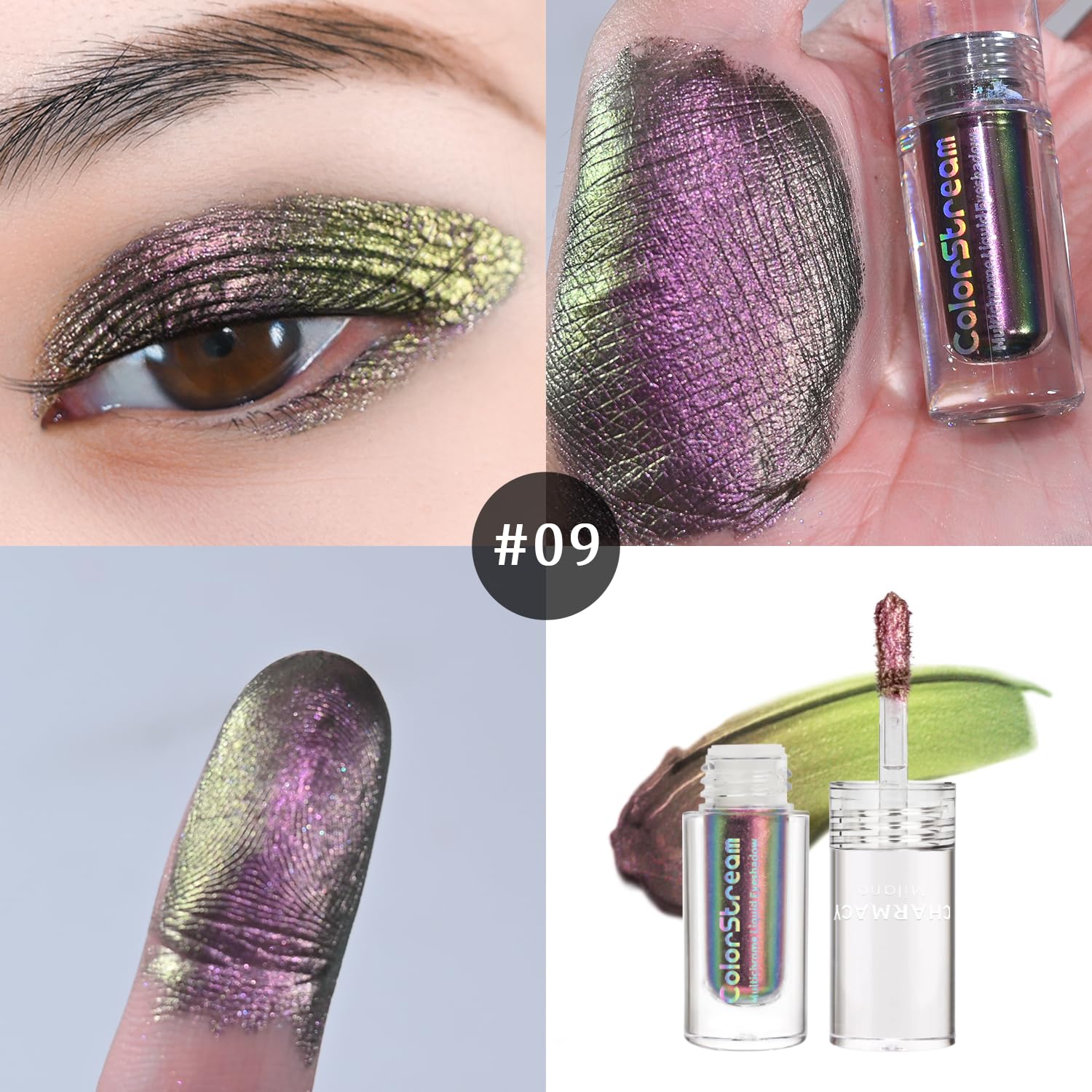 - 【CHARMACY Multichrome Liquid Eyeshadow】A multi-faceted, multi-dimensional and transformative liquid eyeshadow. The unrivaled three-tone multichrome finish takes your eyes to the next dimension with color-changing technology innovations and liquid structure, creating the illusion of professional multi-layered eye makeup.