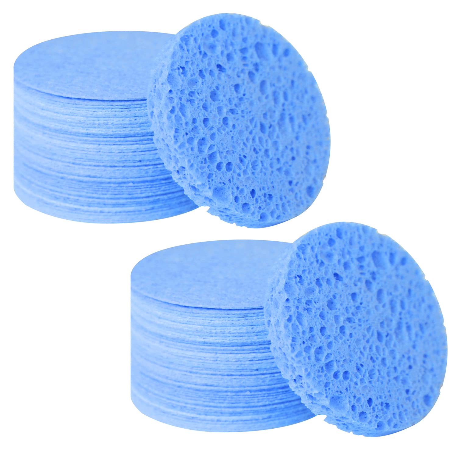 100-Count Facial Sponges Compressed Natural Cellulose Sponge Round Shape Face Sponge for Face Cleansing Exfoliating and Makeup Removal, Blue