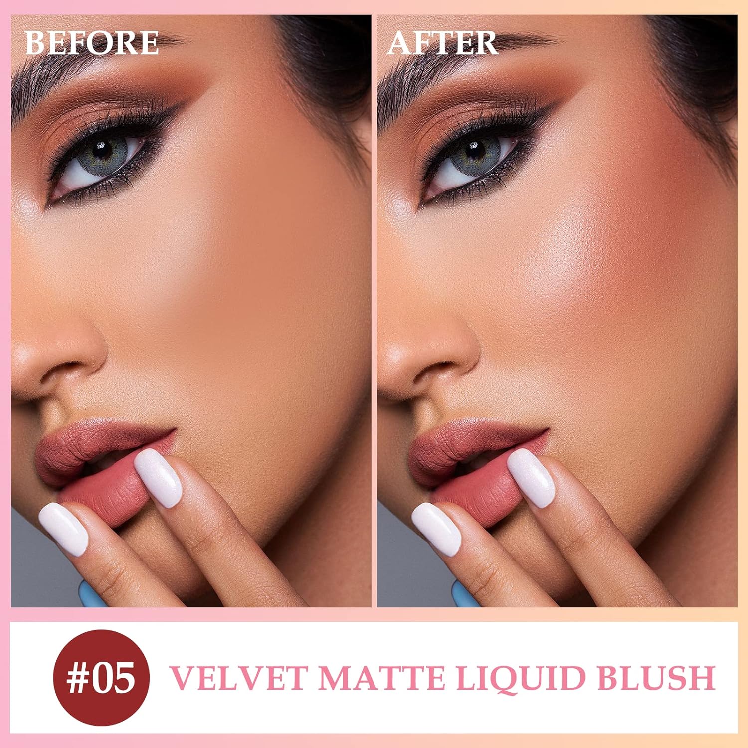 Boobeen Liquid Blush Velvet Cream Blush Makeup Matte Soft Gel Face Blush Makeup for Cheeks, Lightweight Blendable Liquid Blush Stick, Long-lasting Smooth Natural Blush Color