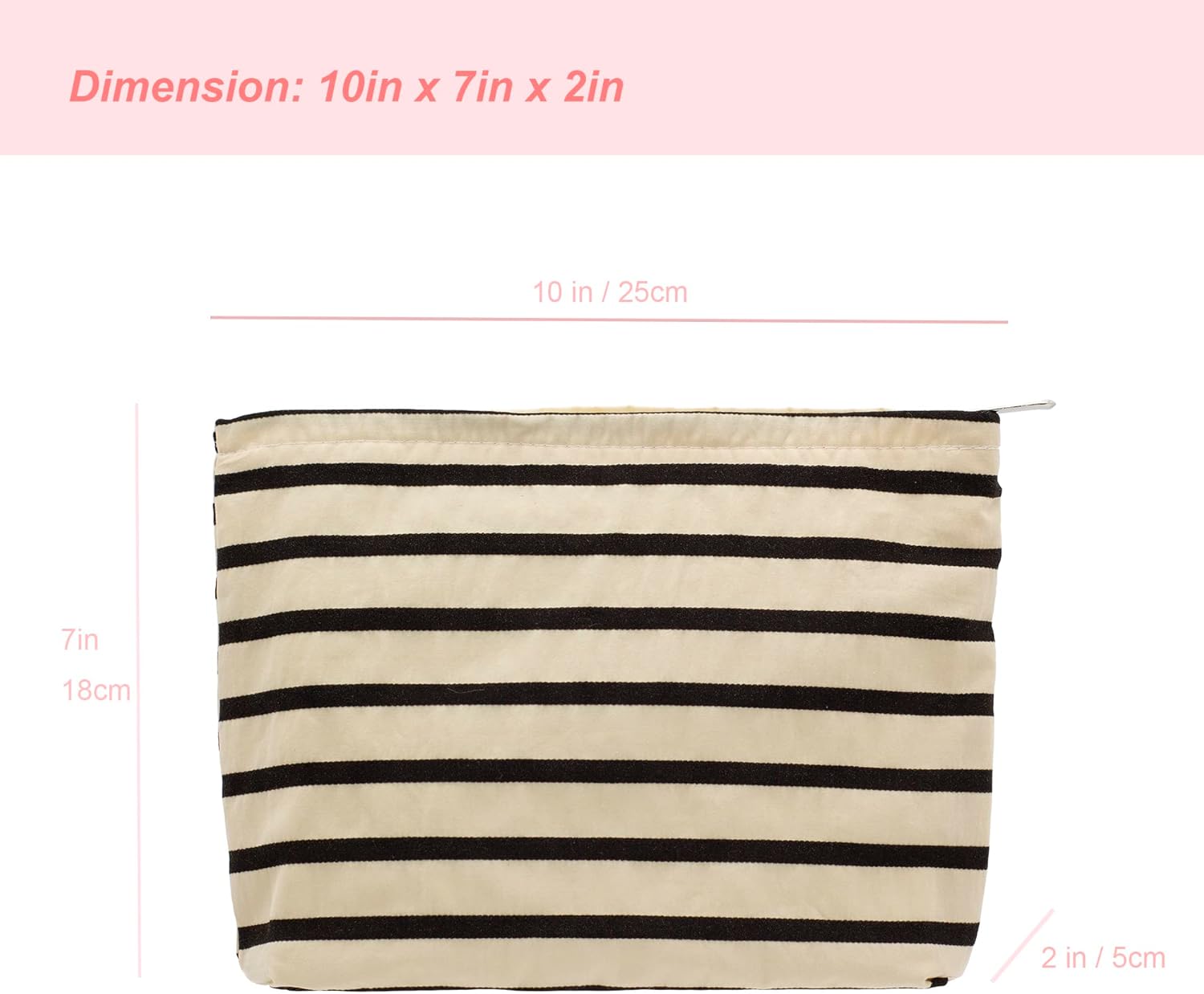 PAZIMIIK Floral Makeup Bag Large Cotton Zipper Pouch for Purse Travel Canvas Make Up Organizer for Women Cosmetic,Stripe White