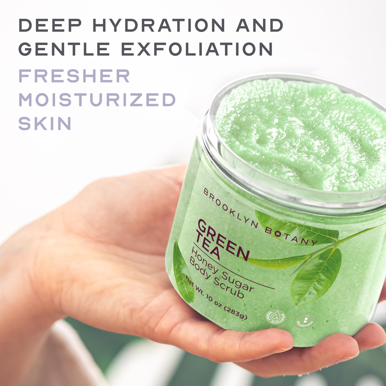 Brooklyn Botany Green Tea Honey Sugar Scrub for Body 10 oz – Deeply Hydrating and Gently Exfoliating Body Scrub for Women and Men – Moisturizing and Nourishing the Skin