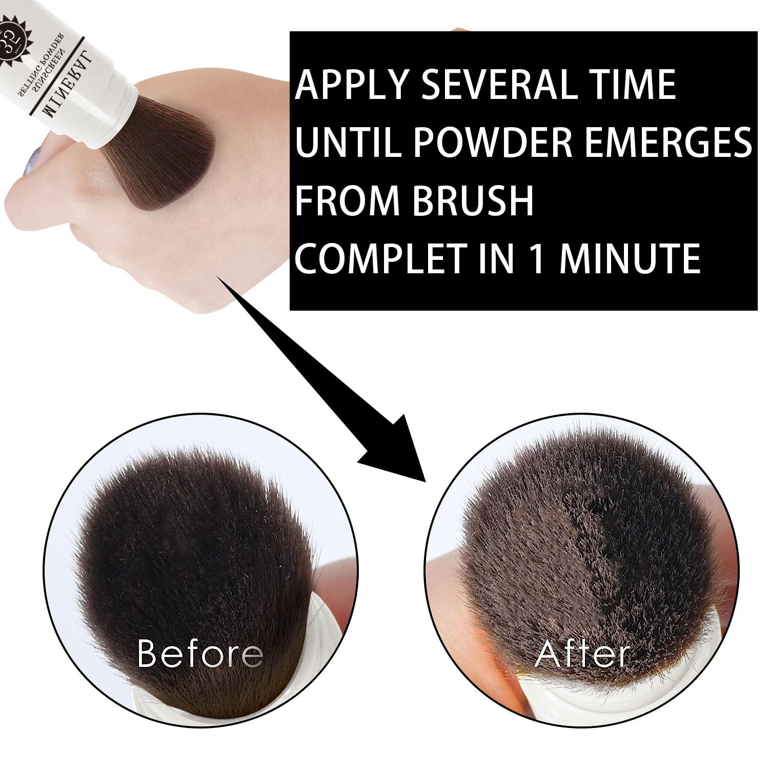 - Brush Design - The high-density quality brushes dispense a precise amount of setting powder. After applying makeup, take off the cap, slide down the brush sleeve, brush required setting powder on your face, pull up the plastic sleeve and cover the cap after finished.