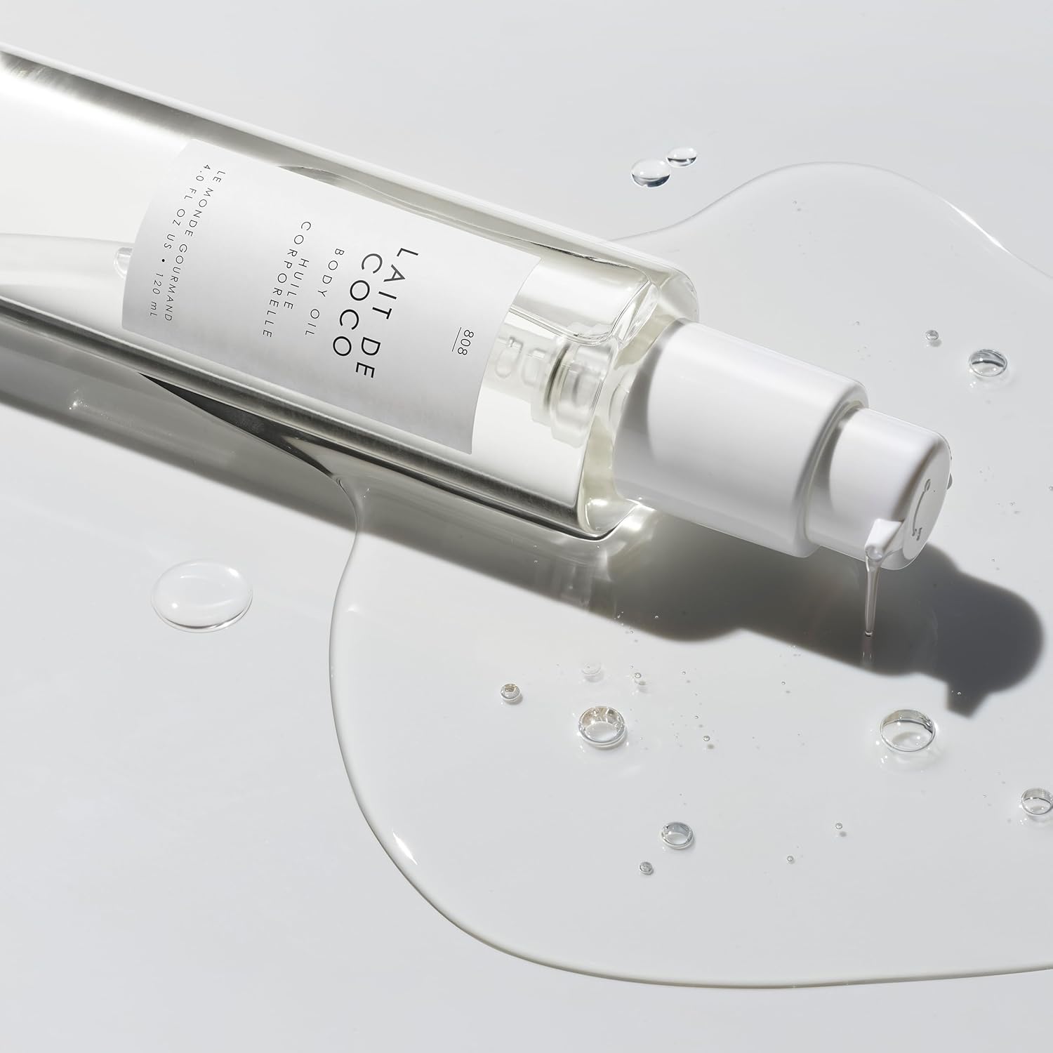 - We’ve taken our beloved Lait de Coco scent and transformed it into an ultra rich body oil that transforms skin from parched to parfait. Quick to absorb, Apricot and Sweet Almond Oils nourish skin, while vegetable derived vitamin E and antioxidants help retain the appearance of pampered skin. This can be used as a nourishing bath oil, a gentle body cleanser in the shower or massaged into the skin for maximum hydration and glow.