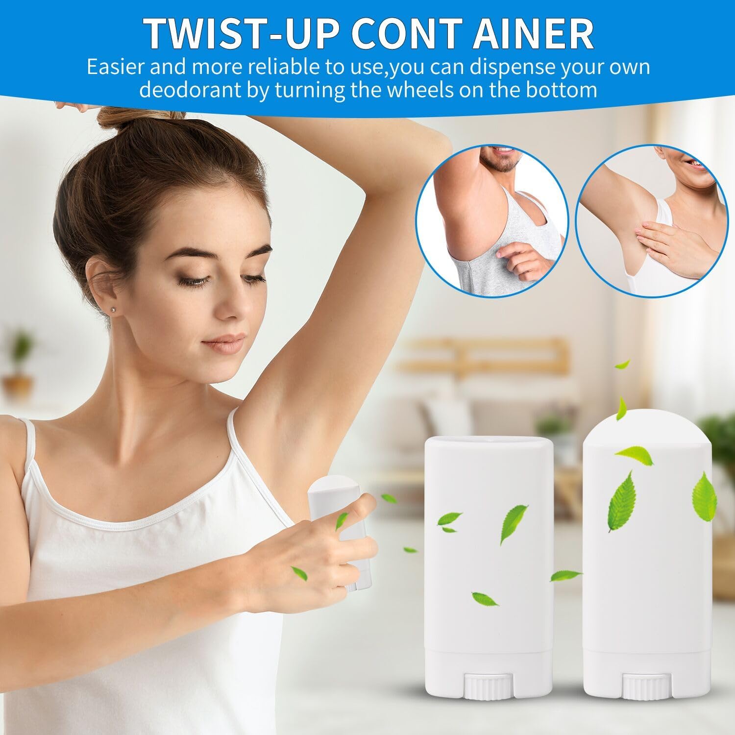 - High Quality: 15ML Empty oval deodorant containers are made of recyclable polypropylene plastic,odorless, non-toxic. 100% Brand new and can be reused. Safe BPA-free plastic twist-up containers, can be use fill with lip balms, chapstick,deodorant or cosmetic crafts.