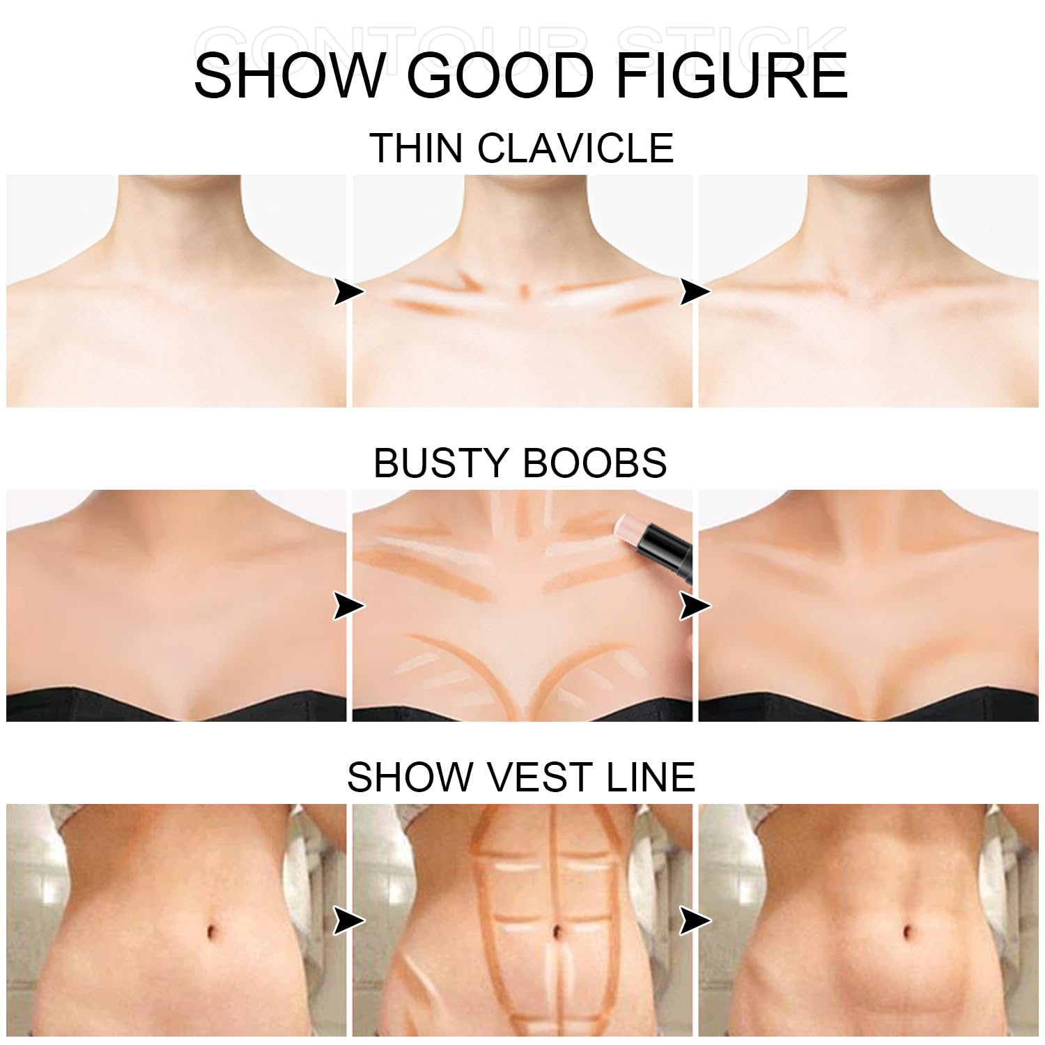 - 【Widely Used】This trio contour stick is easy to use, and the lightweight, non-greasy cream texture can blend into the skin, nourishing it. The makeup stick is suitable for facial contours, eyes, lips, cheeks, and body contours, meeting the makeup needs of daily work, gatherings, shopping, travel and other occasions.
