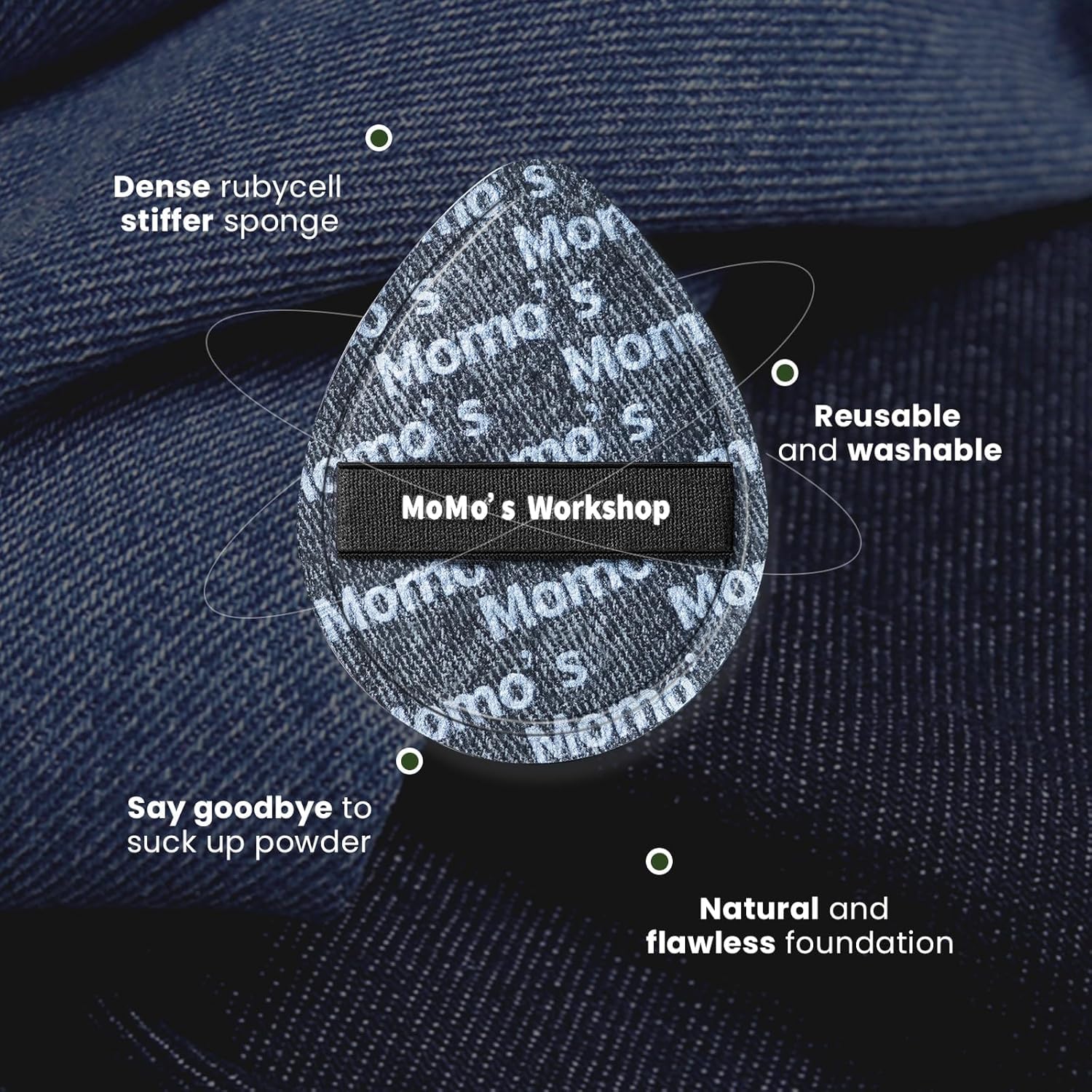- ăNatural & Flawless Makeupă The black denim makeup sponge puff is made of rubycell and stiffer sponge with super bouncy, effectively applying cosmetics and bringing you natural and flawless effects.Whether you're applying makeup for work, commuting, or traveling, this puff stays put for quick, controlled touch-ups on the go.