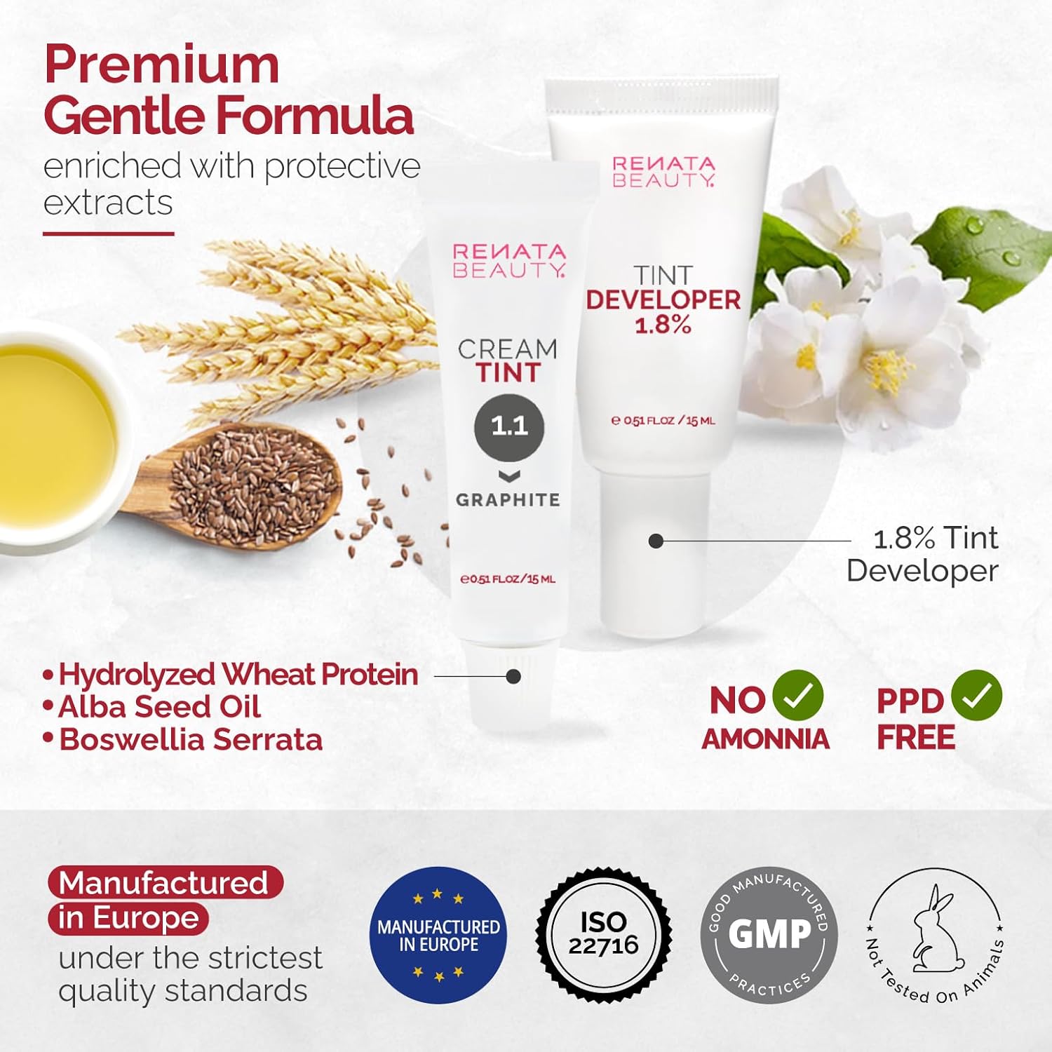 RB RENATA BEAUTY Tint Kit β Cream Hair Dye Kit with Developer and Application Brush for Spot Coloring - Covers Gray Hairs, Smudge-Proof, Long-Lasting Up to 4 Weeks, 20 Applications [Graphite]