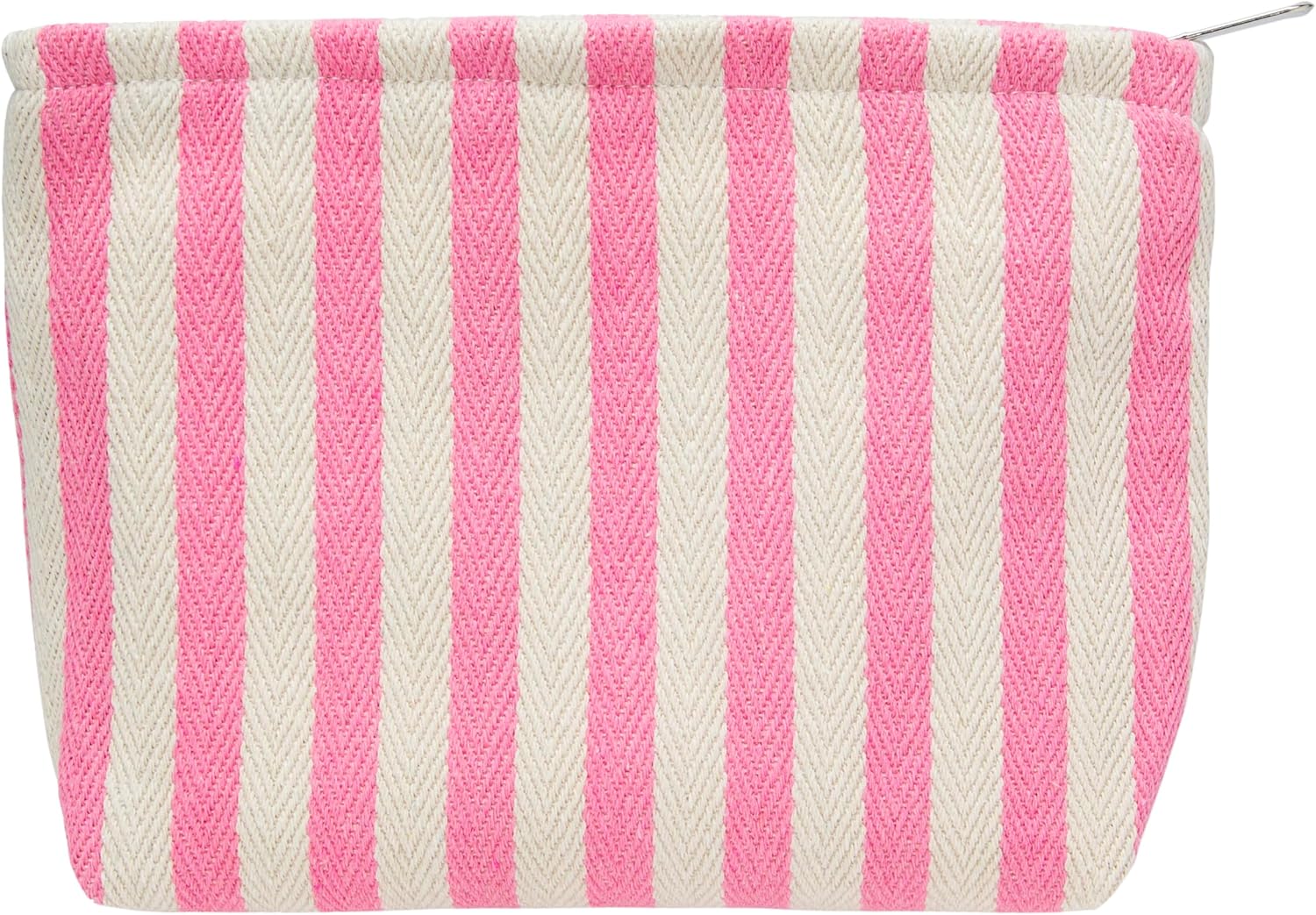 Makeup Bag Large Cotton Zipper Pouch for Purse Travel Canvas Make Up Organizer for Women Cosmetic,Stripe Pink