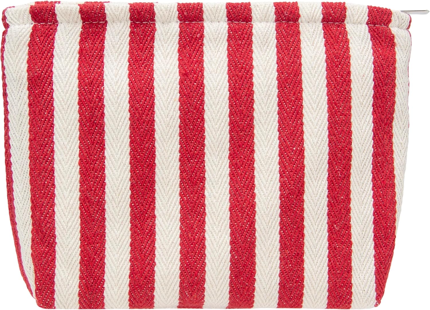 PAZIMIIK Makeup Bag Large Cotton Zipper Pouch for Purse Travel Canvas Make Up Organizer for Women Cosmetic,Stripe Red