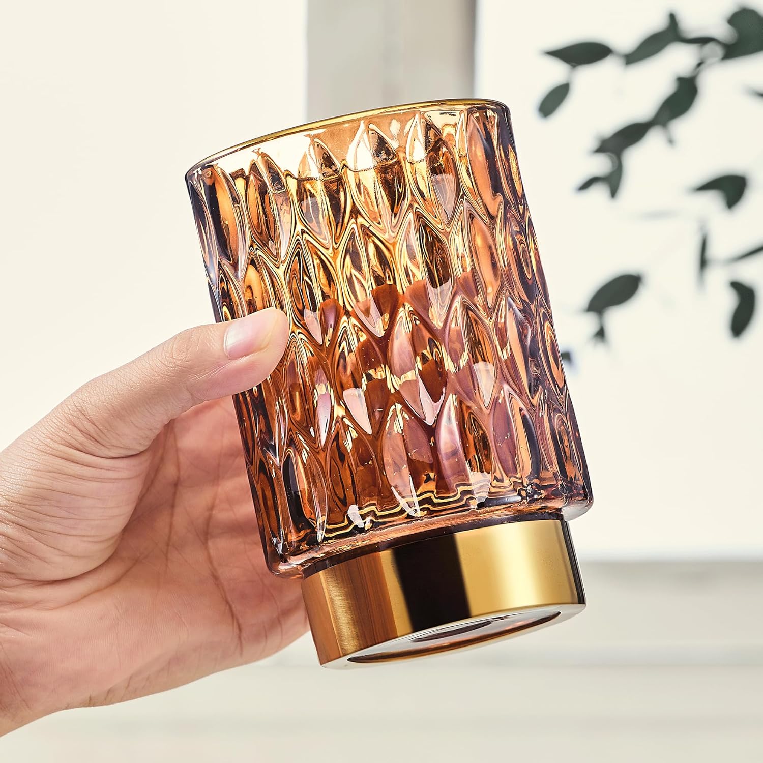 - Exquisite Design: Made of high-quality glass and a golden metal base.Its exquisite striped design on the glass body, complemented by the metal gold plating on the bottle mouth's top edge,sturdy and stylish.