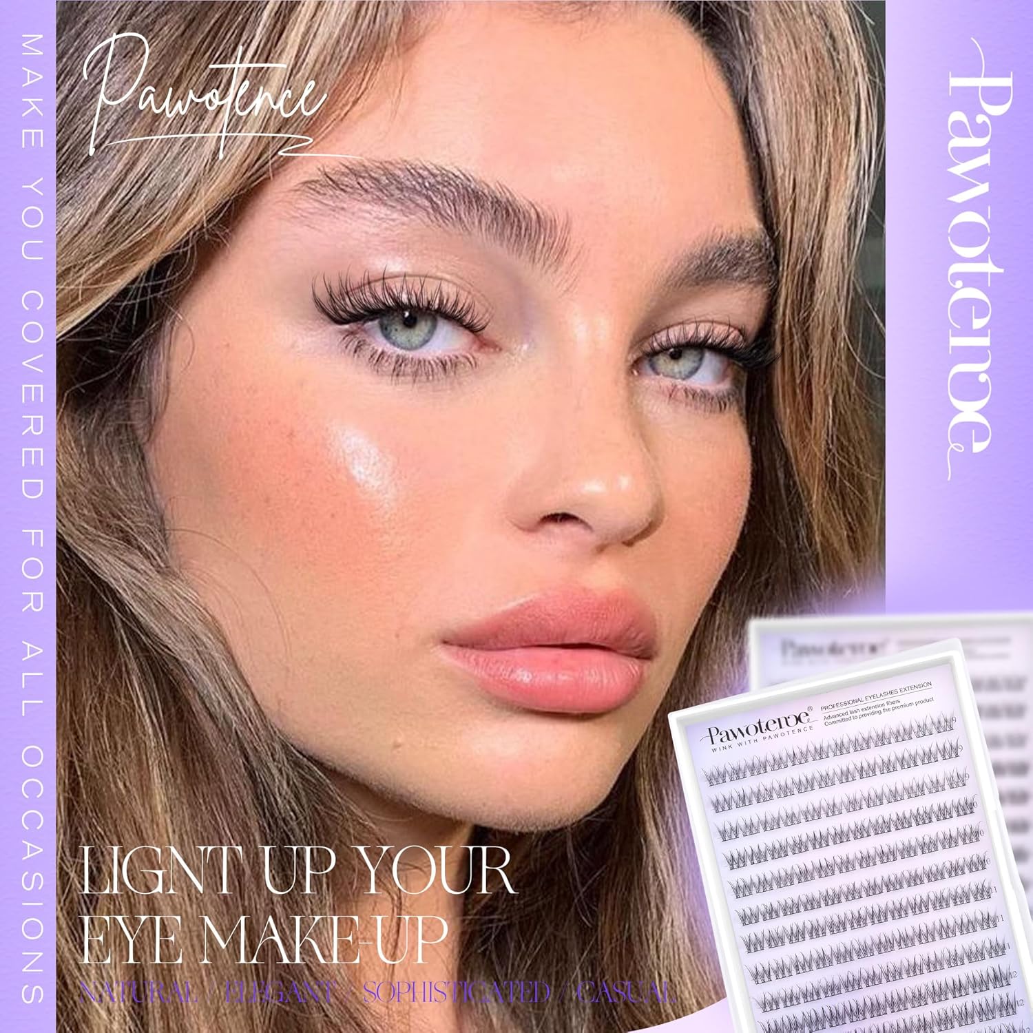 Pawotence Natural Lash Clusters Wispy Cluster Eyelash Extensions 144pcs Eyelash Clusters 9-12mm Individual Lashes Extension DIY Soft C Curved Lashes Clusters