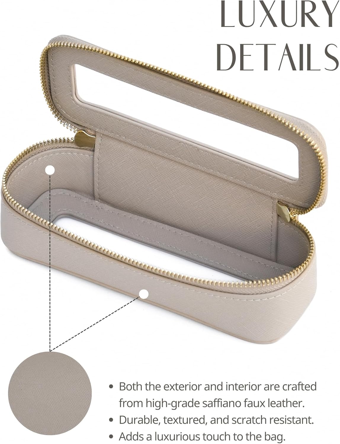 • [Slim Brush Makeup Bag] - This slim makeup bag is 7.5'' x 2.5'' x 2.1'' (19.1cm x 6.4cm x 5.3cm), ideal for storing makeup brushes and daily mini essentials like lip balms, hair ties, jewelry, Air Pods, charging cords, and medications. Slip it into your purse, backpack, everyday tote, or travel bag for convenient access to your essentials.