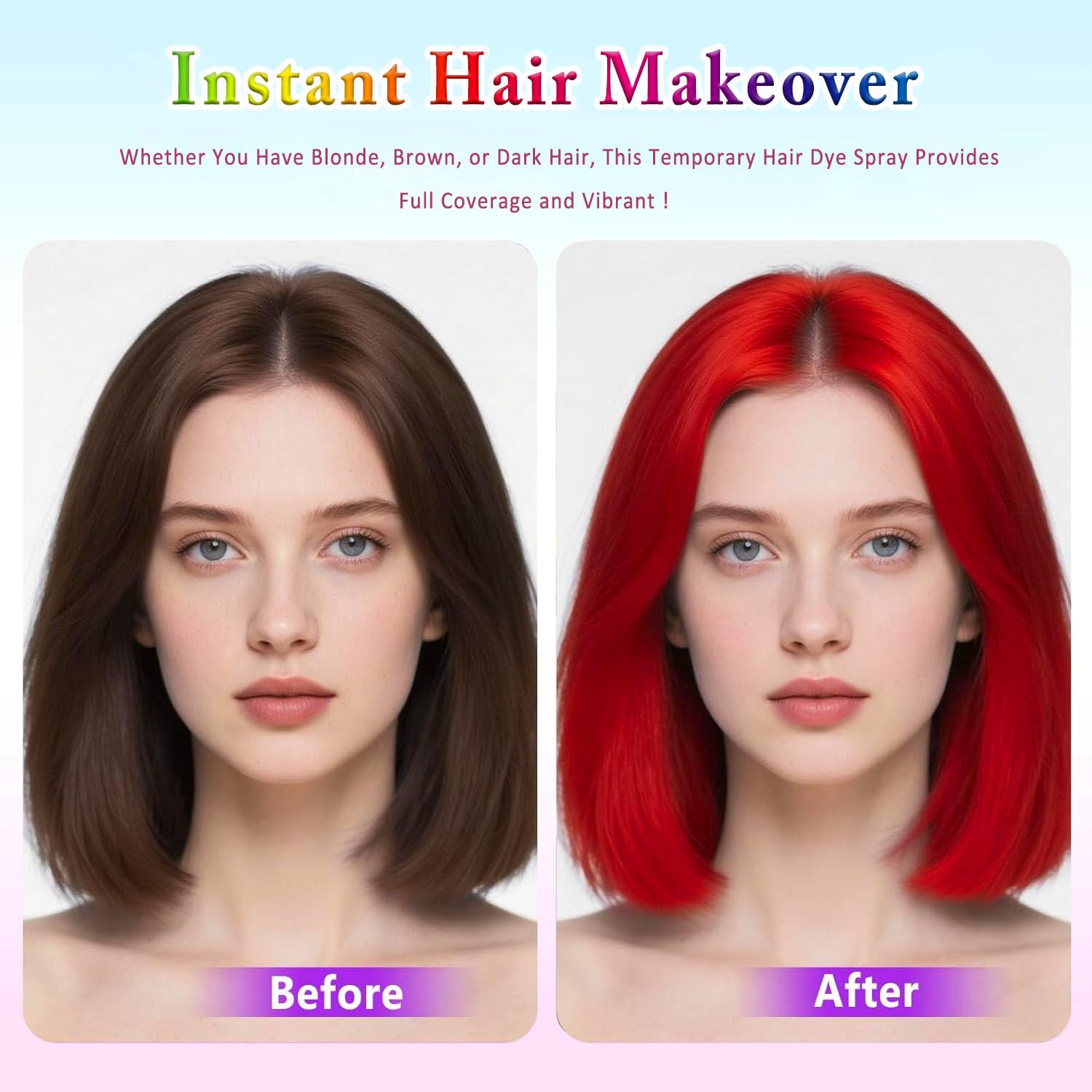 - Instant Bold Color Transformation: Achieve rich, vibrant shades in seconds with our hair color spray, ideal for temporary hair dye that lasts all day without fading, perfect for spontaneous style changes.