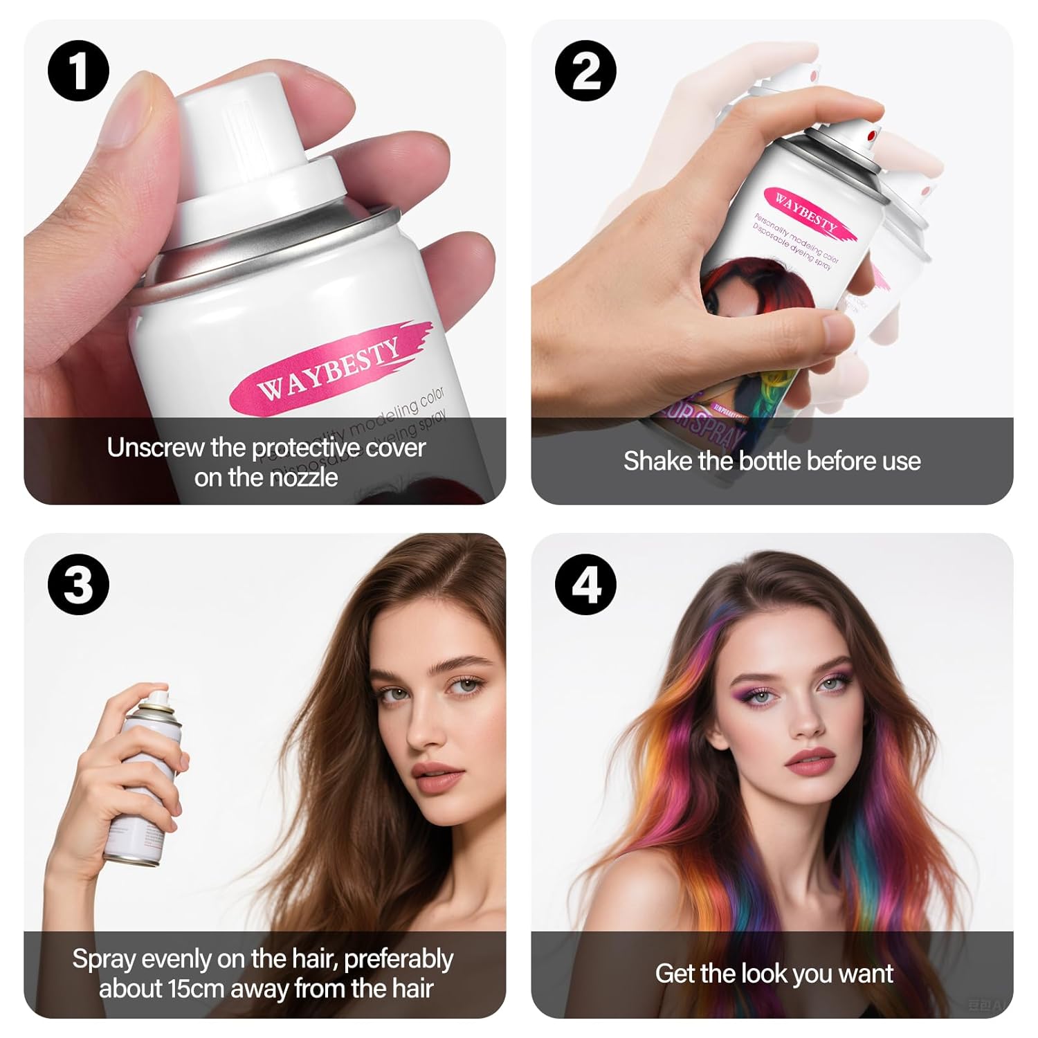 - 1. Instant Vibrant Color---- Get Bold, Vibrant hair in seconds! Our Temporary hair color spray delivers rich,fade-resistant shades that last all day, perfect for parties, costums, or fun style experiments.
